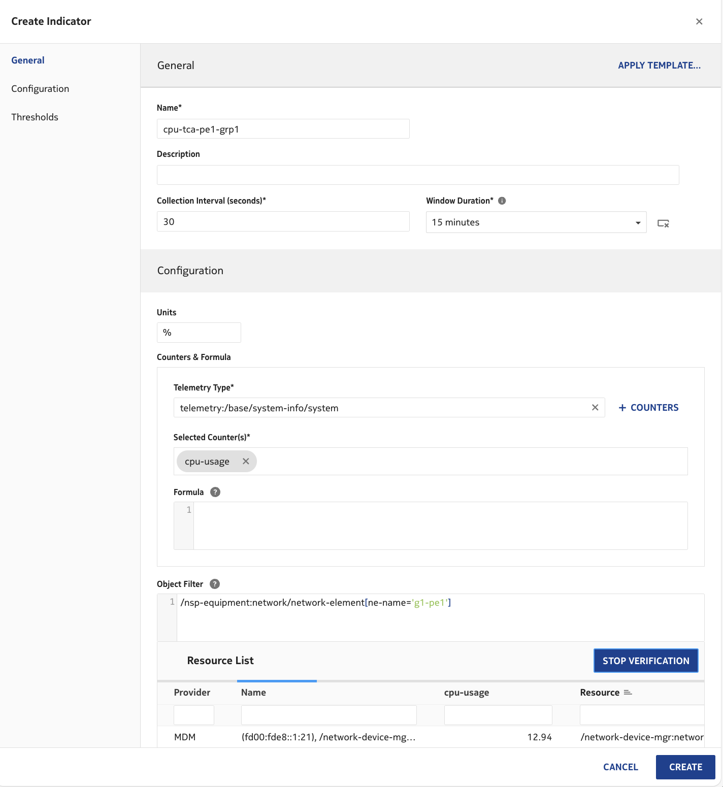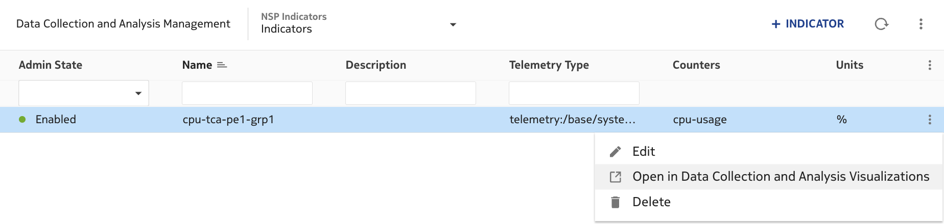 In this activity, you will use Indicator Analytics to turn raw telemetry into actionable insights. An indicator is a subscription to a customized metric that allows you to define and monitor KPIs using telemetry data, arithmetic operators, and aggregation functions. You will create an indicator for CPU usage monitoring, set a static threshold, and configure Threshold Crossing Alerts to trigger when limits are exceeded. You will then observe these alerts flowing into Kafka, where they can be tied to programmable workflows, and visualize the collected data in the Data Collection Viewer.